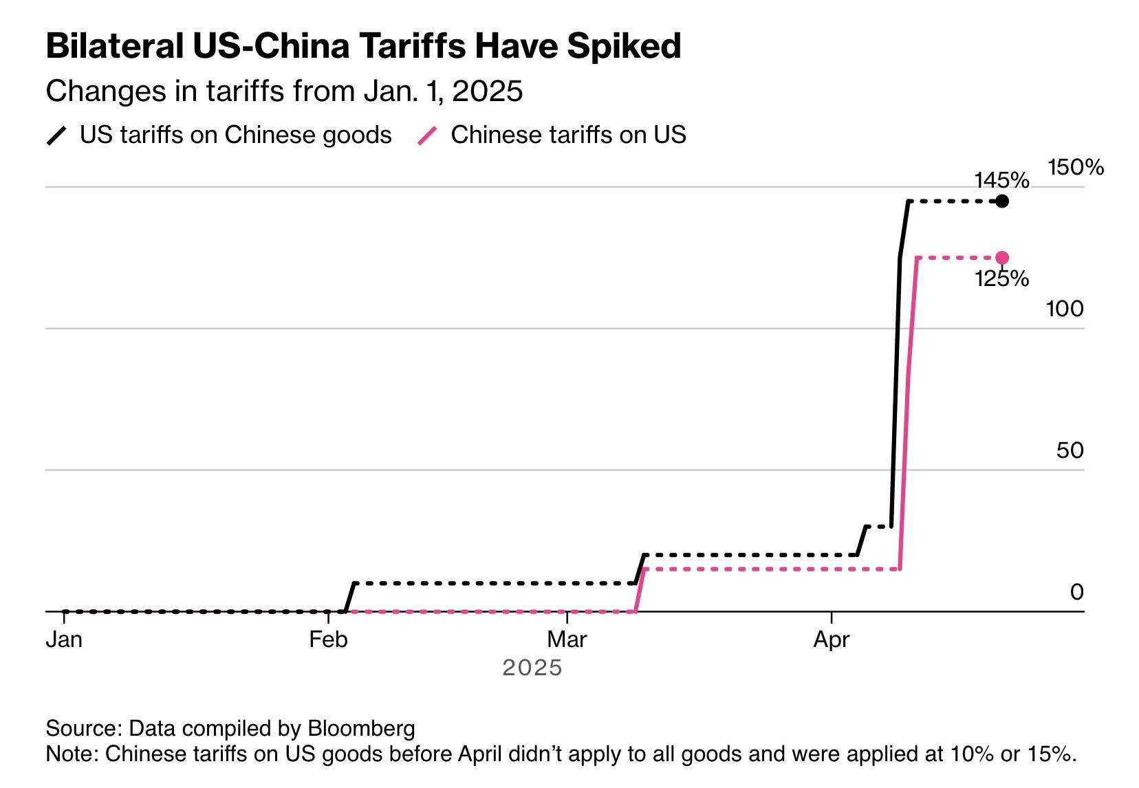 在核威懾、貿易戰、軍備競賽等政治博弈的語境下,博弈更可能是分階段的,且沒有明確的終點(冷戰就是很好的例子)。以中美關稅戰為例,站在 2025 年 5 月,關稅戰基本是回合製遊戲,儘管中國的反擊通常十分及時(當天內完成),但這依然是序貫博弈。